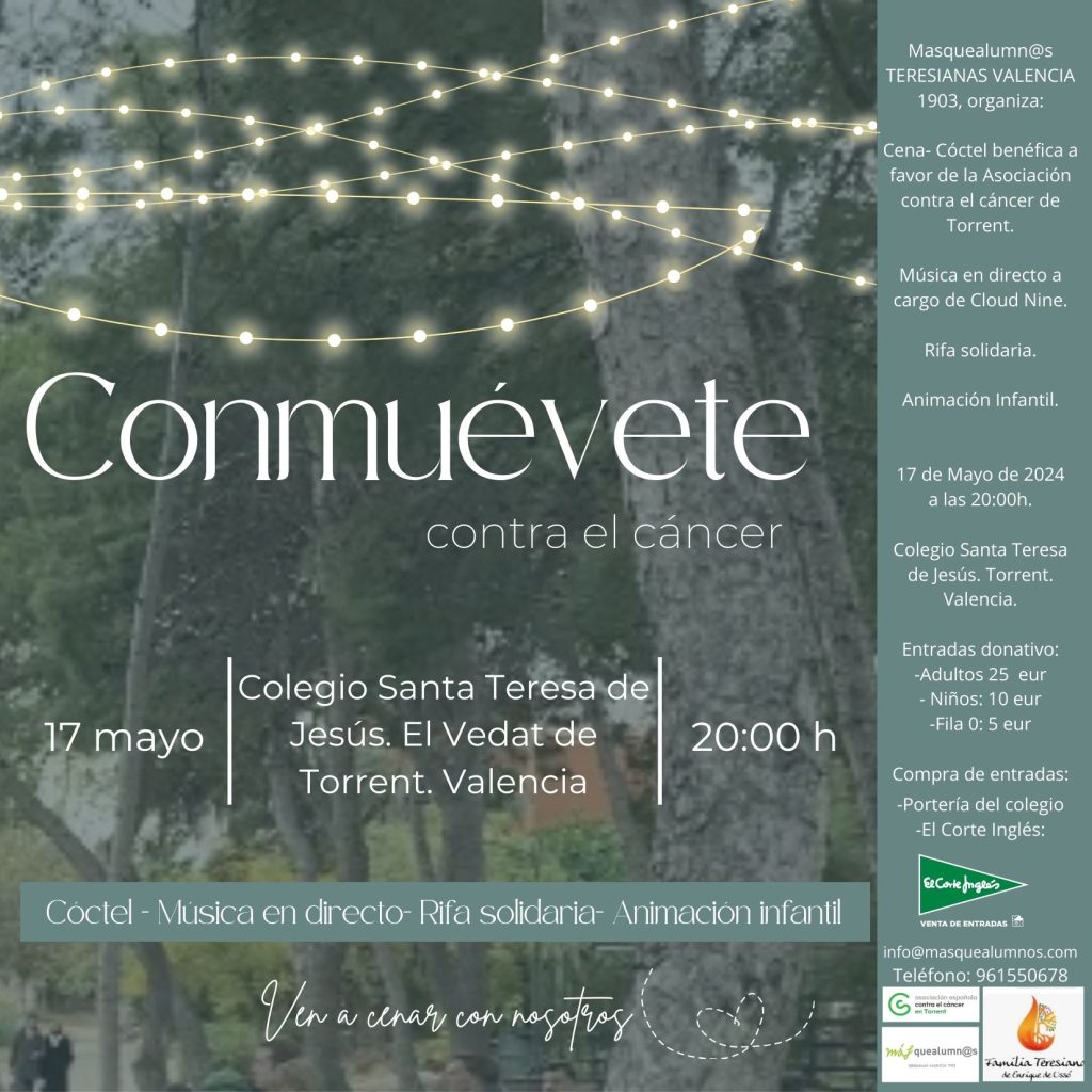 Queridos antiguos alumnos Teresian@s, este año vamos a celebrar el día del antiguo alumno, de una manera muy especial. Nuestro colegio abre sus puertas con una muy especial cena benéfica a favor de la Asociación Contra el Cáncer de Torrent.
